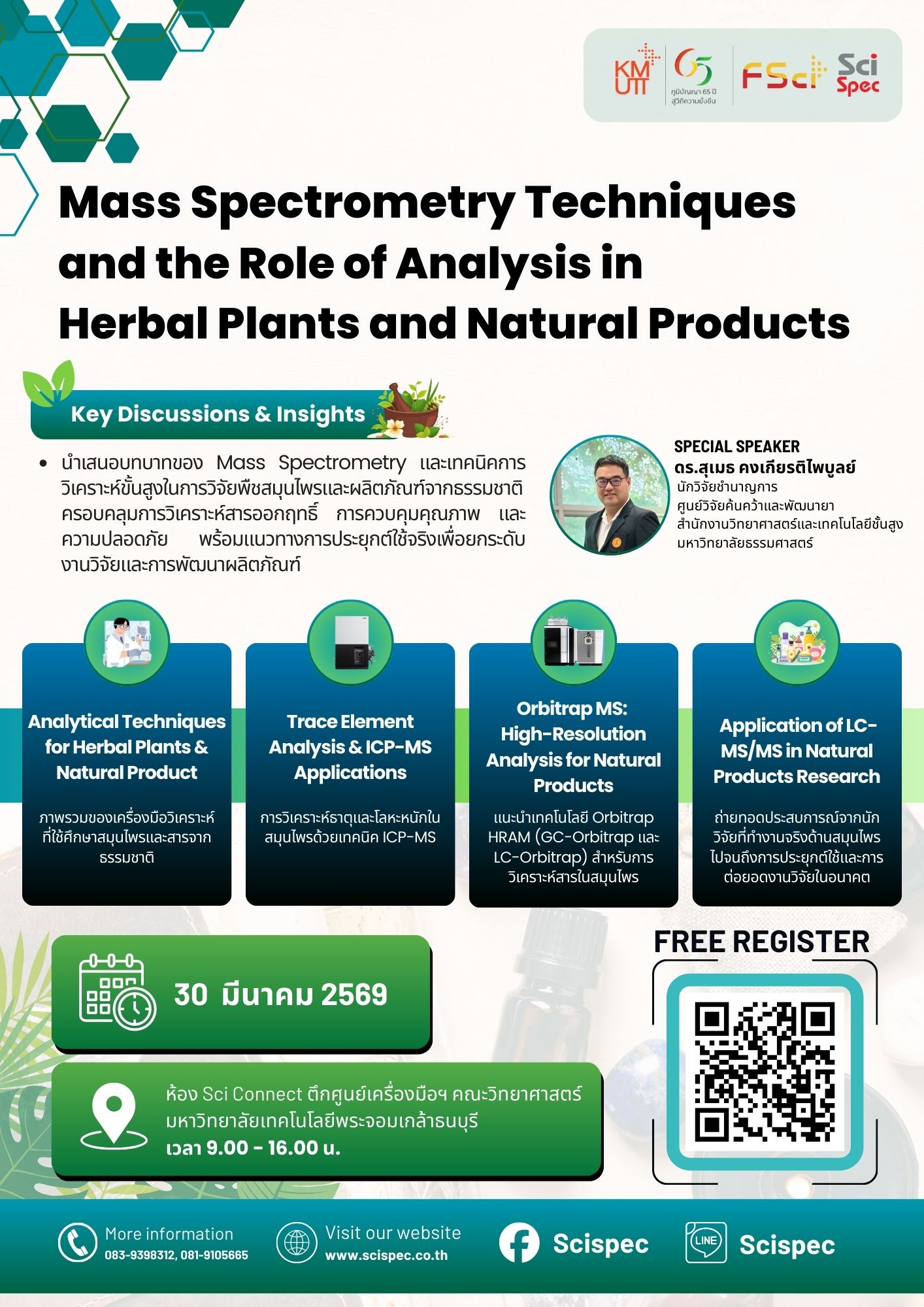 เทคนิคแมสสเปคโตเมทรีและบทบาทของการวิเคราะห์ในพืชสมุนไพรและผลิตภัณฑ์ธรรมชาติ ณ คณะวิทยาศาสตร์ ม.เทคโนโลยีพระจอมเกล้าธนบุรี (บางมด)